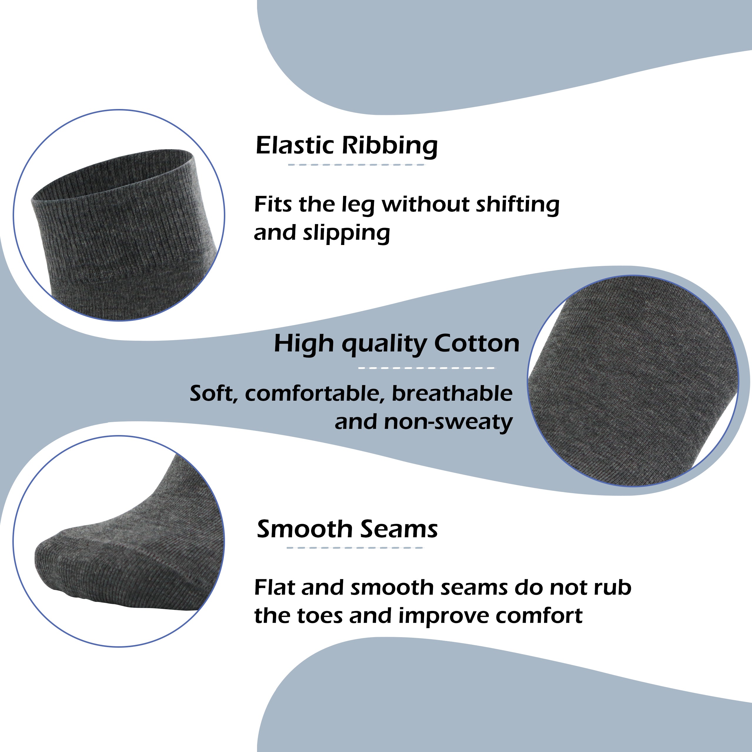 These socks are fabulous! I wear a 6 1/2 women’s shoe and finding socks to fit in the heel is a struggle. These are PERFECT for beneath work slacks. They are much, much thicker than knee high hose (so old lady) and the material is soft and smooth. Bought the 4 pack of all black and will explore getting more in some of the colors.